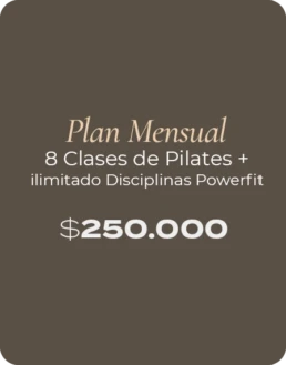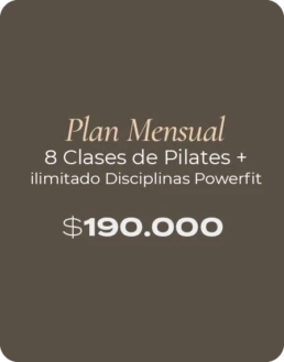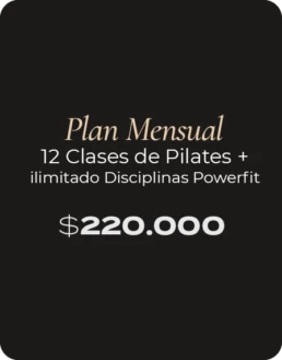 Pilates Individual conYasna Moris + ilimitadoDisciplinas Powerfit Pilates Grupal de 5 a 10 alumnoscon Yasna Moris + IlimitadoDisciplinas Powerfit